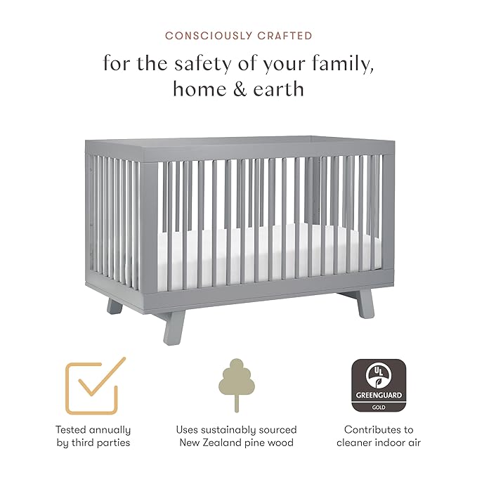 Babyletto Hudson 3-in-1 Convertible Baby Crib - GREENGUARD Gold Certified Convertible Crib to Toddler Bed & Daybed - Wooden Baby Bed with 4 Adjustable Mattress Heights - Strong & Easy Assembly - Grey