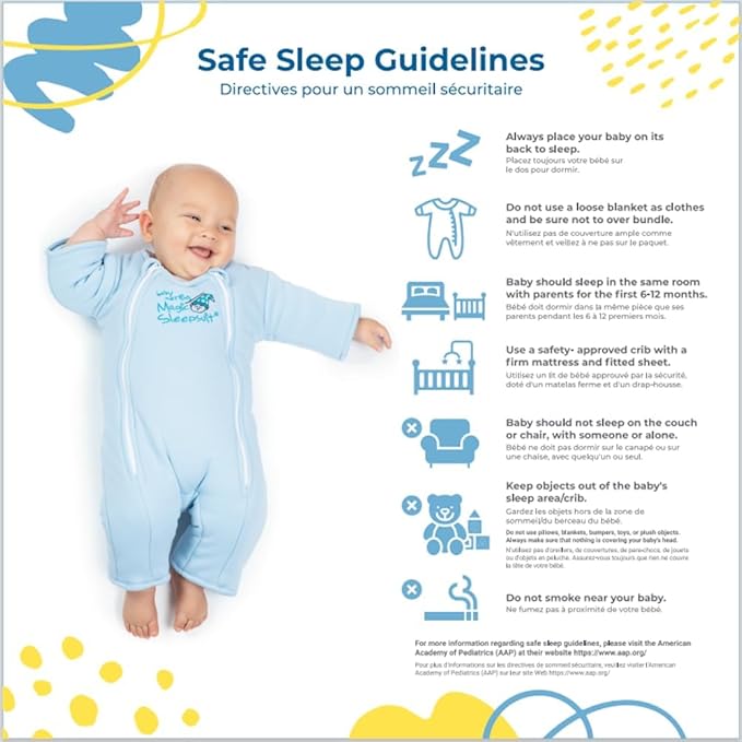 - USE SAFELY – For back sleeping in a bare crib only. Discontinue use when baby shows signs of rolling over or exceeds size range (Small: 12–18 lbs, Large: 18–21 lbs).