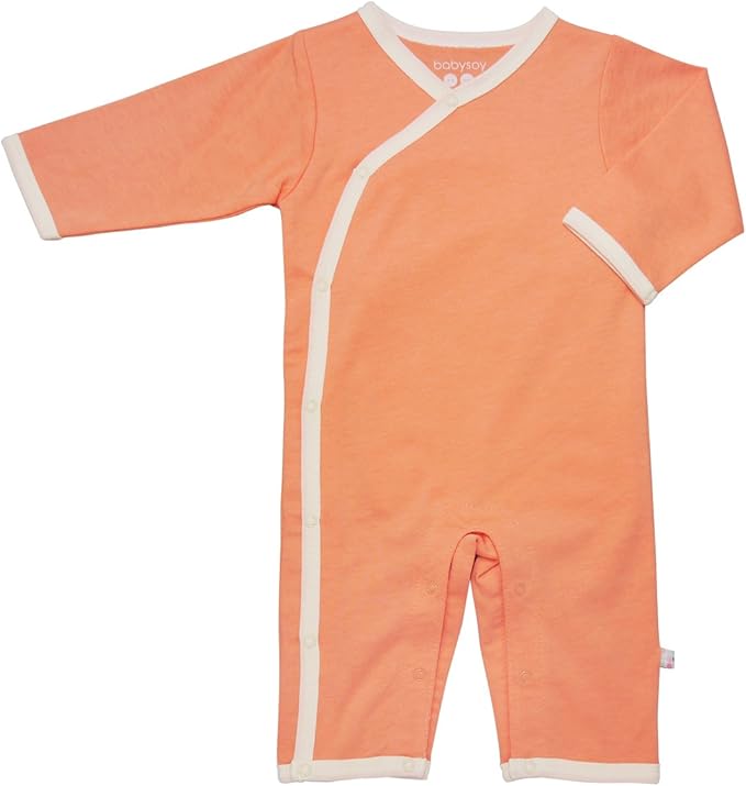 Babysoy Newborn Baby Unisex Kimono Side Snap Long Sleeve Onepiece Romper Coverall