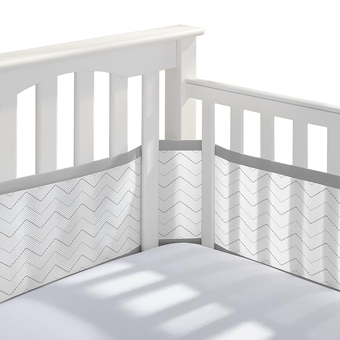 BreathableBaby Breathable Mesh Liner for Full-Size Cribs, Classic 3mm Mesh, Gray Chevron (Size 4FS Covers 3 or 4 Sides)