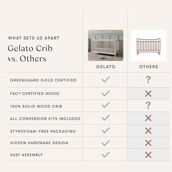- GREENGUARD Gold Certified Crib: Our 4-in-1 cribs are rigorously tested for over 10,000 chemical emissions & VOCs. Designed with a non-toxic paint finish that is free of lead and phthalates, our crib provides a safe and clean environment for your babyโs rest and recreation.