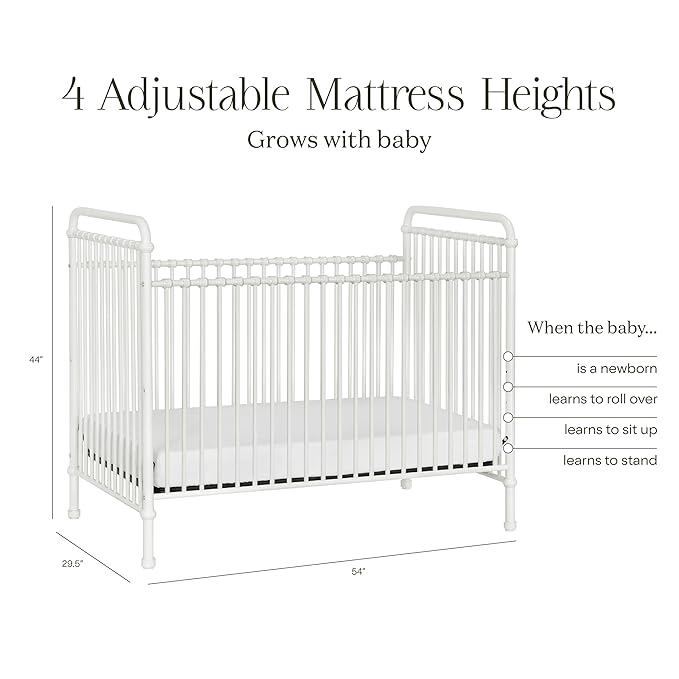 - GROWS WITH BABY: Four adjustable mattress positions that can be lowered as your baby begins to sit, pull up, and stand. Easily converts to toddler bed and daybed. toddler bed conversion kit 15599 sold separately