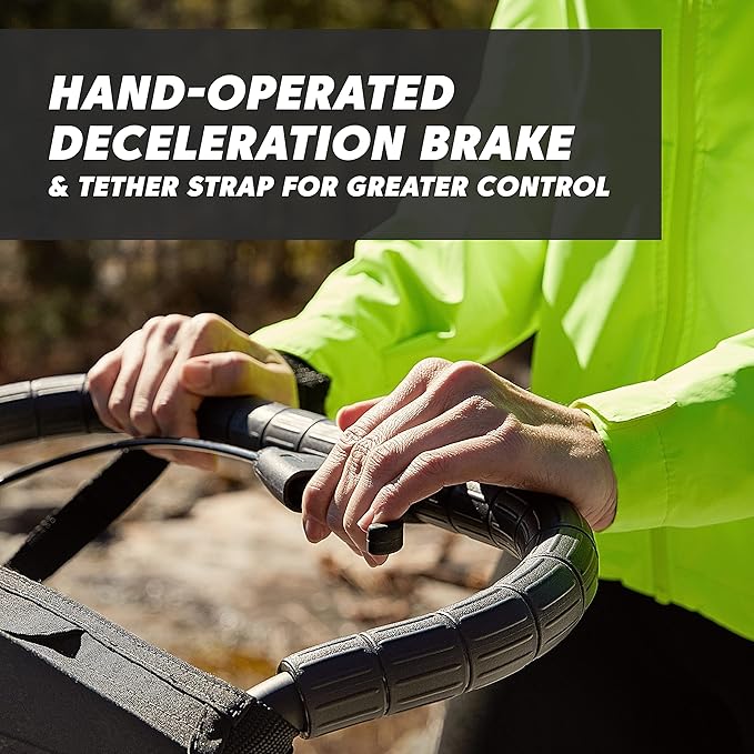 - The unique, hand-operated deceleration brake and handlebar tether strap keep you in control whether you need to head downhill or pick up the pace