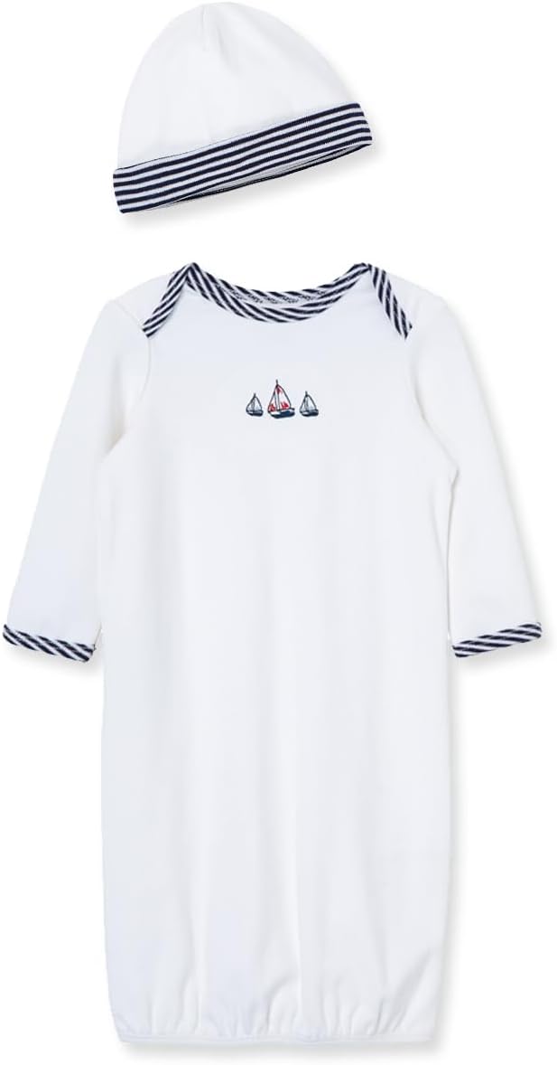 Little Me Clothes for Baby Boys' 2-Piece Nightgown and Cap Set 100% Cotton with Elastic Bottom, Baby Essentials, 0-3 Months