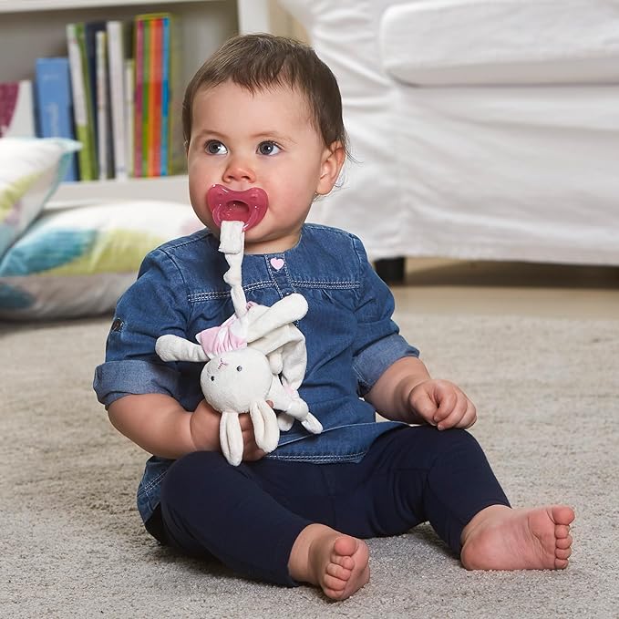 Chicco Pocket Buddies Soft Pacifier Holder-Lovey, Soothing Plush Toy Animal 0m+, Pink Bunny