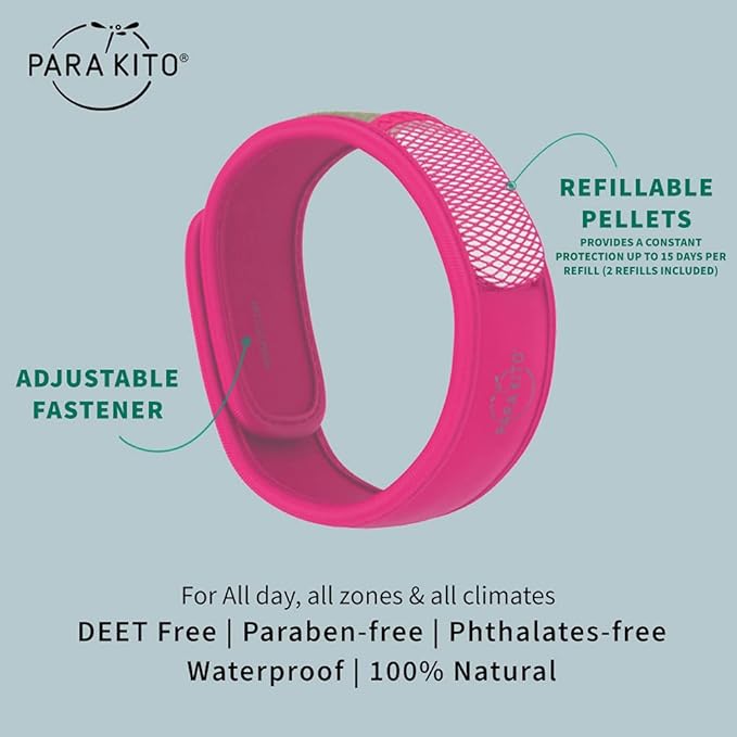 - WATERPROOF & REFILLABLE: All day, all zones, all climates! Whether you are strolling through a forest or snoozing on a tanning bed, PARA’KITO wristbands provide constant protection for 15 days per refillable pellet (2 pellets Included).