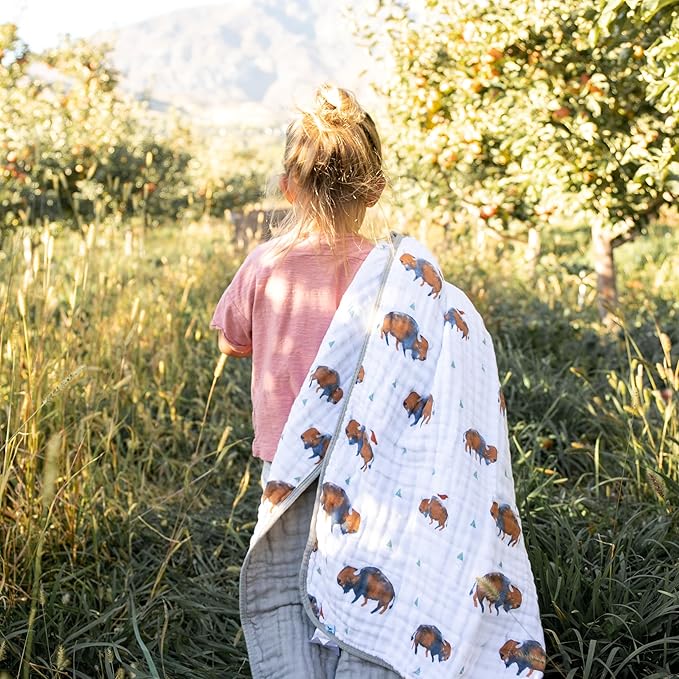 - PREMIUM QUALITY: We choose premium 100% cotton muslin for crafting our quilts to ensure your baby’s delicate skin is wrapped in a soft, breathable fabric that allows heat to escape and fresh air to enter. Freely woven muslin also provides flexibility for little arms and legs to comfortably move. Our quilts have detailed stitching throughout, color-coordinated reverse side fabric, and all edges feature bias binding.