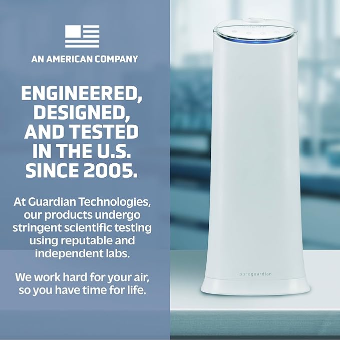 - COOL MIST HUMIDIFIER: The PureGuardian H3200WAR ultrasonic cool mist humidifier guards against dry air in the home, perfect for those with colds, allergies and dry skin. The easy fill 1.5 gallon tank covers 440 sq. ft. rooms and runs up to 100 hours on low speed