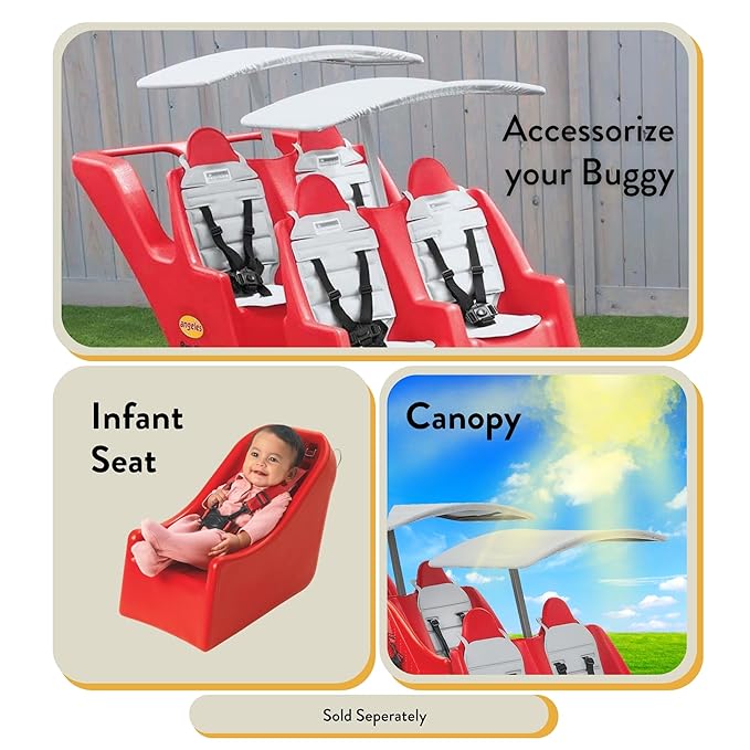 - Children's Factory Fun & Functionality: Children's Factory Angeles is a renowned brand known for its high-quality daycare equipment. This 4 seater stroller is a popular choice for childcare professionals and parents alike, offering a reliable and functional solution for transporting multiple children. (Canopies are sold separately.)