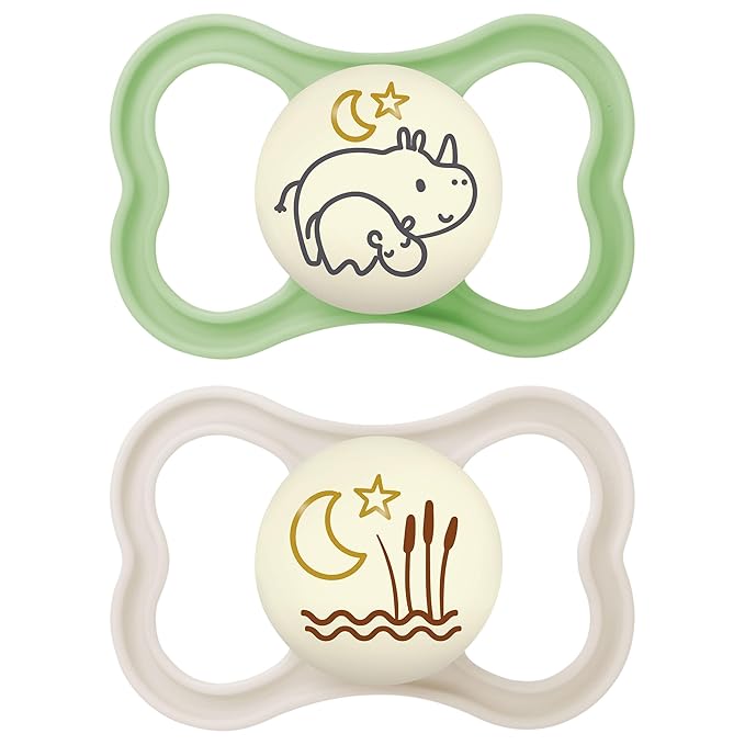 MAM Air Night Pacifiers, MAM Sensitive Skin Pacifier 6+ Months, Glow in The Dark Pacifier, Best Pacifier for Breastfed Babies, Unisex Baby Pacifiers, 2 Count (Pack of 1), Designs May Vary