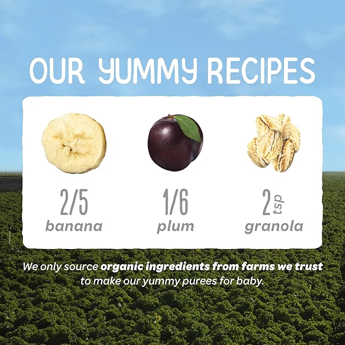 Happy Baby Organics Stage 2 Baby Food Pouches, Gluten Free, Vegan & Healthy Snack, Clearly Crafted Fruit & Veggie Puree, Apples, Bananas, Plums & Granola, 4 Ounces (Pack of 16)