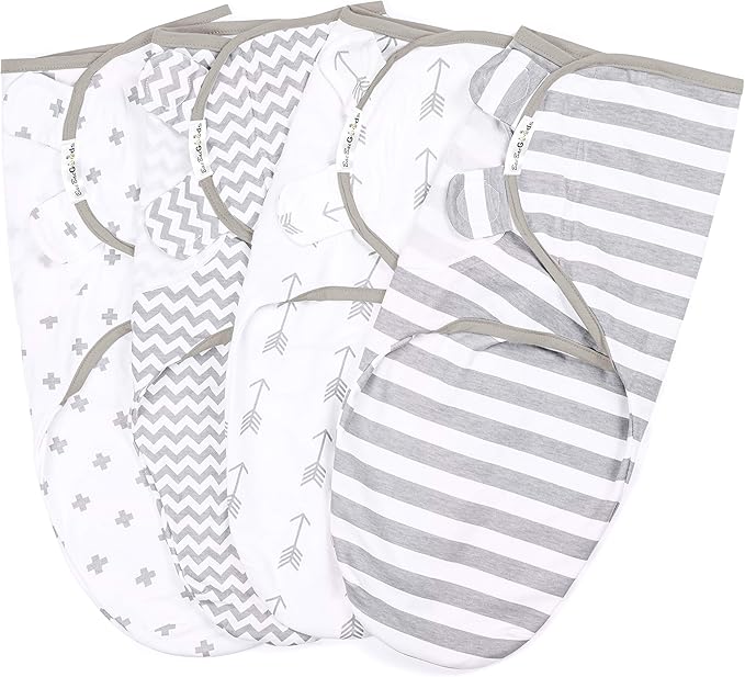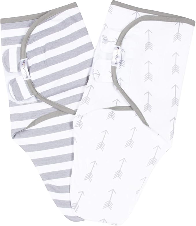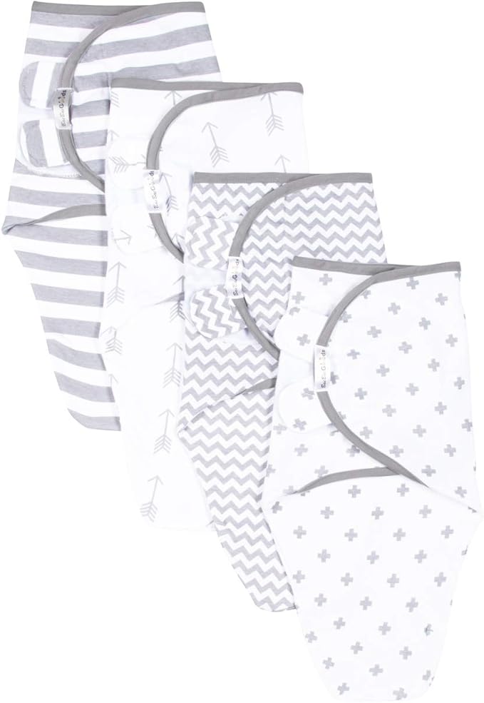 BaeBae Goods Swaddle Blanket, Adjustable Infant Baby Swaddling Wrap Set of 4, Baby Swaddling Wrap Blankets for Boys and Girls Made in Soft Cotton (Grey Arrows, 0-3 Months)