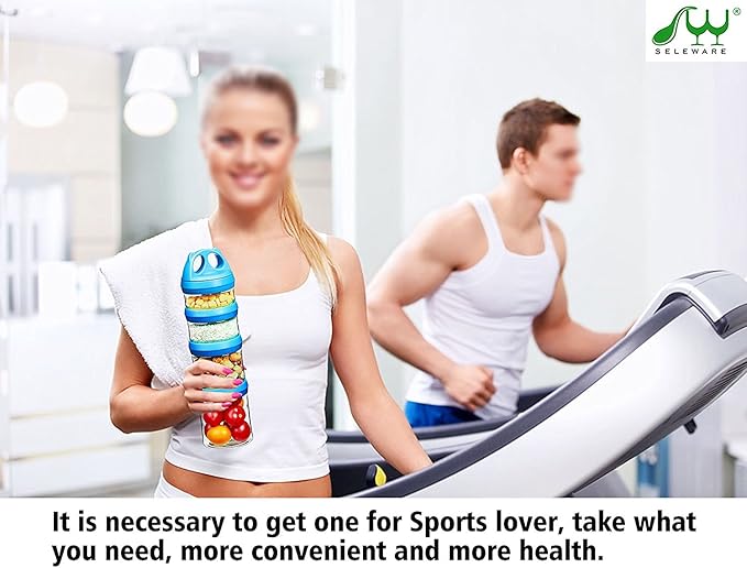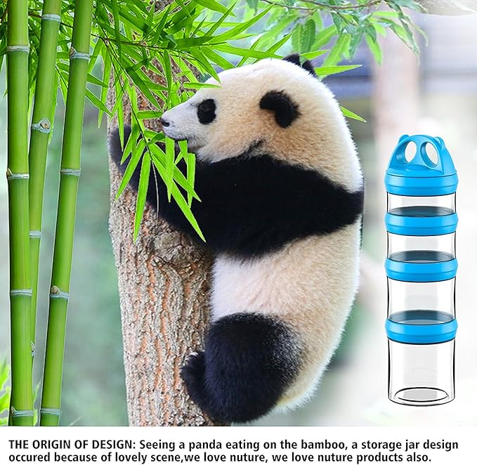 SELEWARE Portable Stackable Food Storage Containers for Snacks Formula Powder and Drinks Twist Lock System Airtight Leak-proof BPA and Phthalate Free 4 Piece Jars 31oz Blue