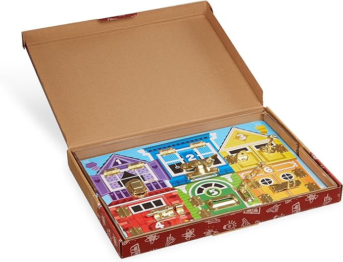 Melissa & Doug Wooden Latches Board Sensory Activity Toy for Kids, Doors and Locks Toy, Wooden Busy Board, Toddler Toys for Ages 3+