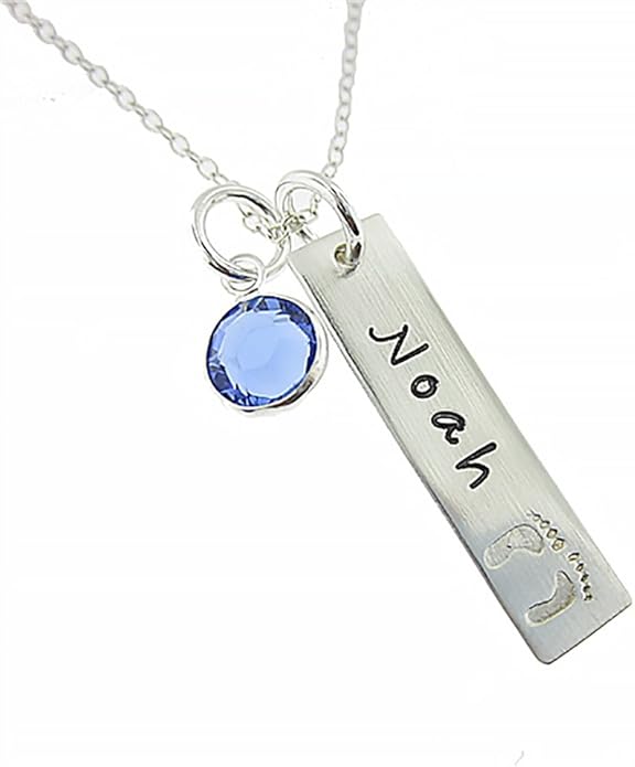 My Tiny Prints Personalized Sterling Silver Name Necklace. Customize with Child's Name, Engraved with Solid Baby Feet. Add Your Choice of Birthstone and Sterling Silver Chain. Gifts for Her, New Mom