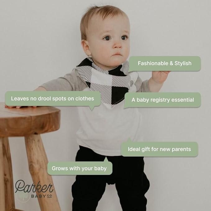 Parker Baby Bandana Drool Bibs 8 Pack Baby Bibs for Boys, Girls, Unisex - Soft & Stylish Teething Bibs for Babies