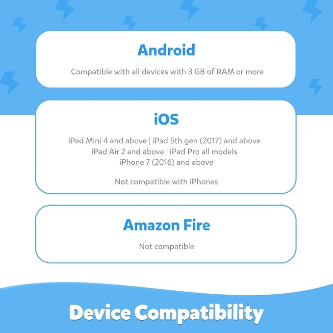 - AR Adventure Anywhere: Download the free Orboot app on your device to unlock an AR adventure. It's compatible with iPad mini 4+, iPads (5th gen & above, including all Air, Pro, and Mini 2+), iPhones (7 & above), and Android devices with 3GB RAM or higher. Note: Not compatible with Amazon Fire devices