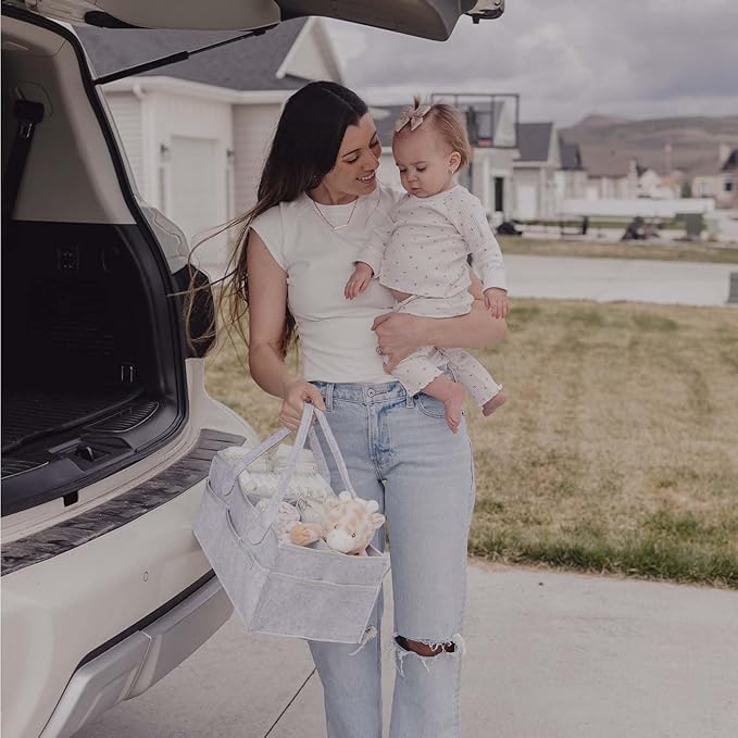 - TAKE IT ANYWHERE - Take Our Diaper holder organizer and use it as a car diaper caddy or simply a car caddy. The Diaper basket with long handles is foldable lightweight and portable which makes it ideal for traveling with kids