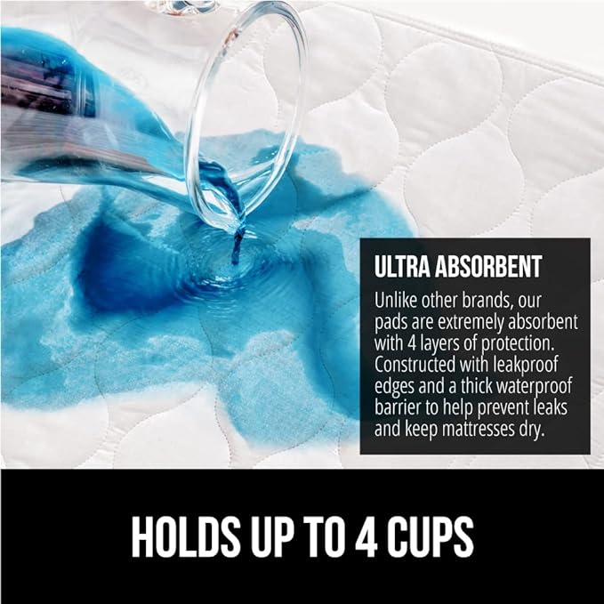 GORILLA GRIP Washable Underpads, 36x32 4 Pack Waterproof Reusable Heavy Absorbency Incontinence Bed Pads, Leak Proof Toddler Mattress Pad, Slip Resistant for Bedwetting, Adults and Kids, White