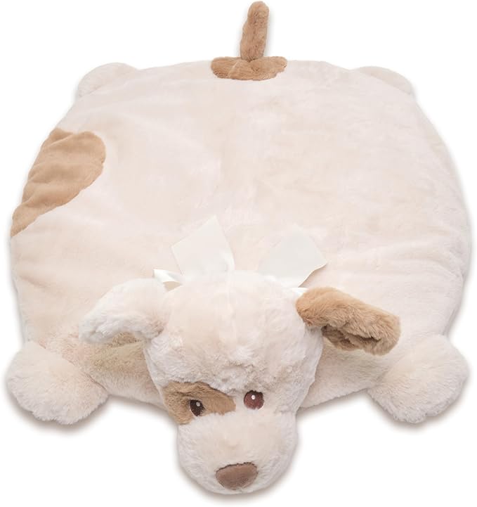 Bearington Baby Lil' Spot Belly Blanket 30"x30" - Beige Plush Puppy Dog Tummy Time Play Mat - Dog Themed Nursery Decor Plush Animal Blanket