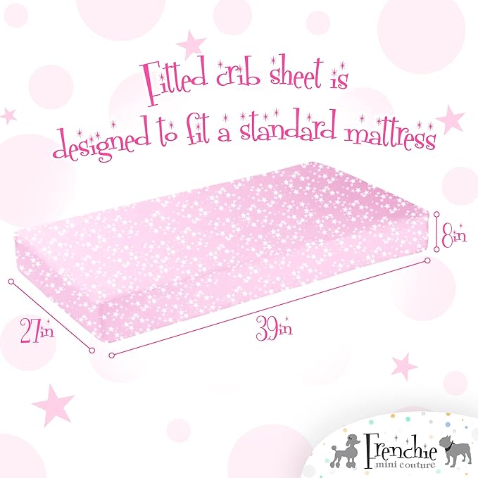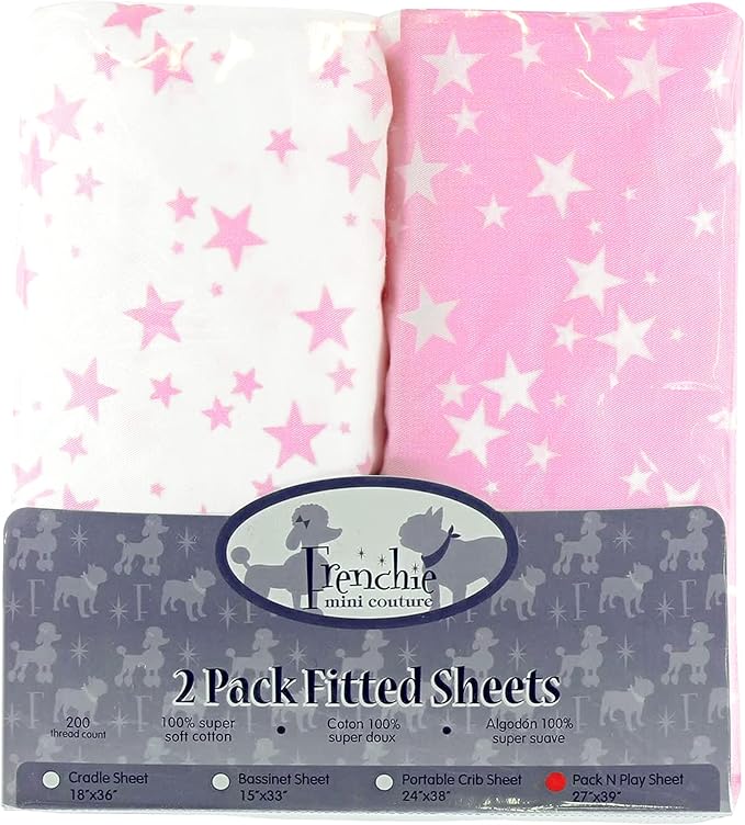 Fitted Pack N Play Sheets 100% Woven Cotton Standard Mattress, Pink Stars, 27 x 39in, 2-Pack