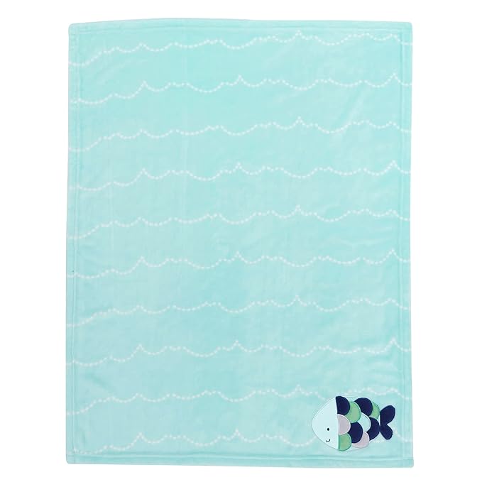 - Luxurious, ultra-soft turquoise blanket with fish applique