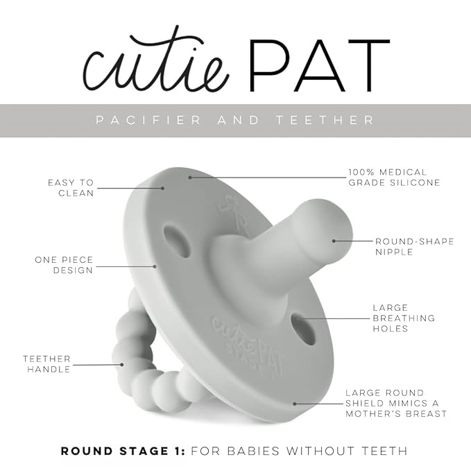 Ryan & Rose Cutie PAT Pacifier Teether (Stage 1, Grey)