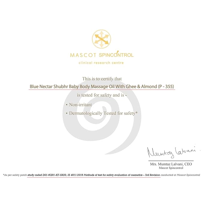 - Plant Based Hypollergenic Baby Oil - Created using ancient wisdom, this ayurvedic baby massage oil contains organic ghee from cow milk, known for natural skin moisturizing & nourishing properties. Body Massage with this calming oil hydrates the skin and promotes better sleep pattern for your little one.