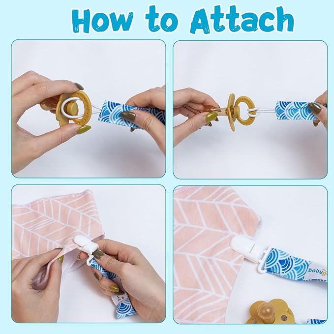 - Multifunctional Usage: These pacifier leashes are usually used for soothies, teethers,burp cloths, teething rings and toys, baby blankets, drool bibs. It is an universal pacifier clip and fits to your favorite brand of pacifier and soother.