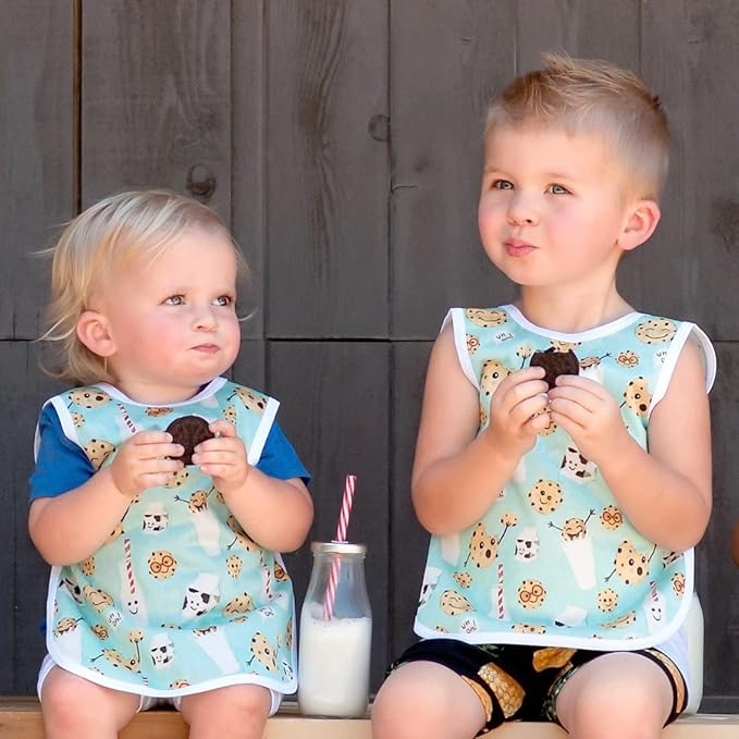 BapronBaby Cookies & Milk Bapron - No Neck Tie Safer Bib for Baby & Toddler - Soft Waterproof Stain Resistant - Machine Washable - Sz Baby/Toddler 6m-3T