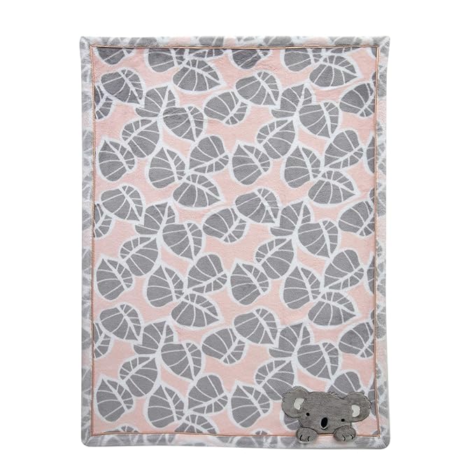 Lambs & Ivy Calypso Pink/Gray Koala Leaf Print Luxury Coral Fleece Baby Blanket