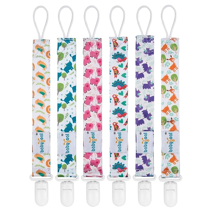 Babygoal Animal Pacifier Clips, 6 Pack Binky Paci Holder and Leash for Boys and Girls Fits for Most Pacifier, Binkie Styles & Baby Teethers & Toys and Gift 6PB04