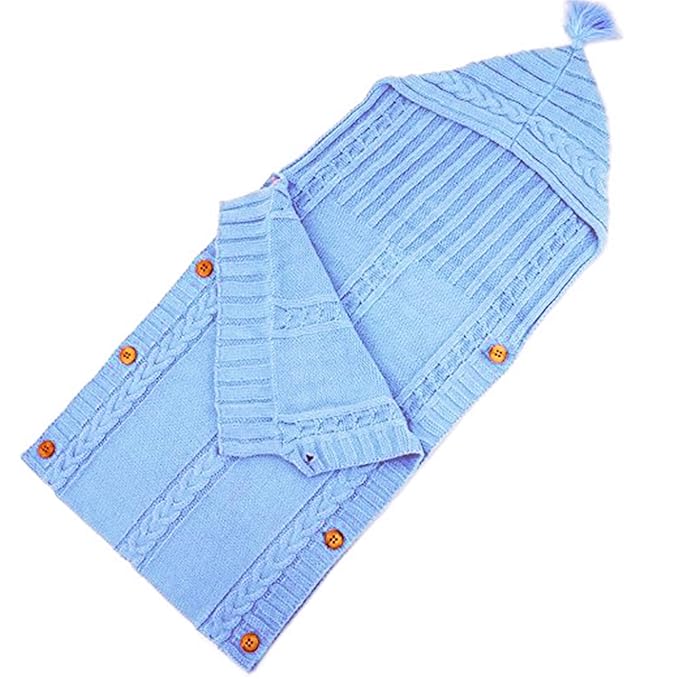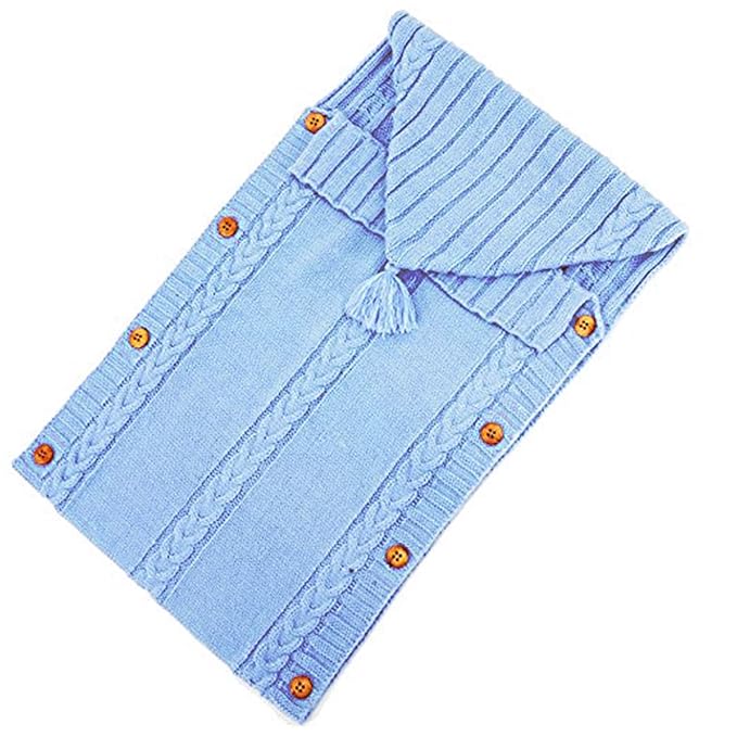 XMWEALTHY Newborn Baby Wrap Swaddle Blanket Knit Sleeping Bag Receiving Blankets Stroller Wrap for Baby(Light Blue) (0-6 Month)