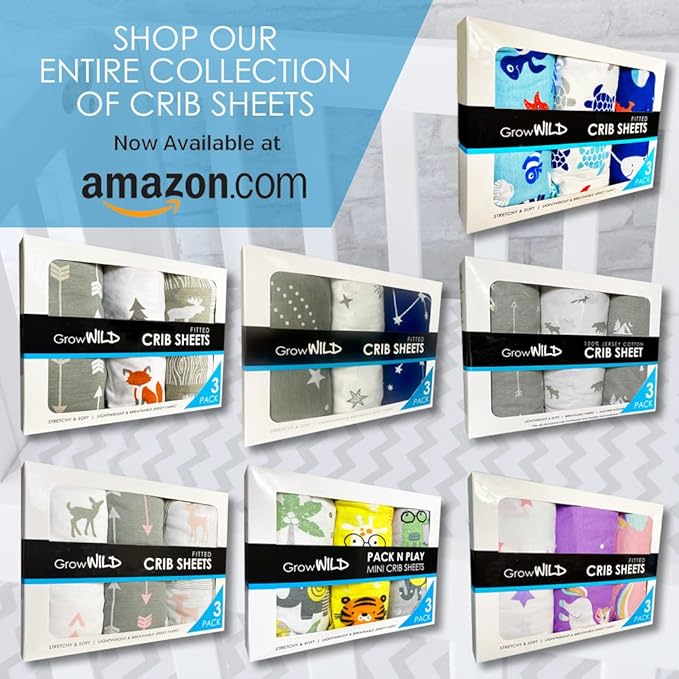 Fitted Unisex Crib Sheets (3 Pack) by GROW WILD - Jersey Knit Cotton Crib Sheets for Boys or Girls, 52β x 28β x 9β Crib Bedding Set (Woodland Gray and White)