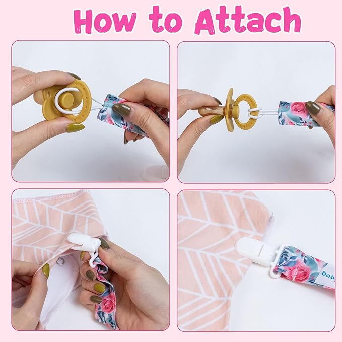 - Multifunctional Usage: These pacifier leashes are usually used for soothies, teethers,burp cloths, teething rings and toys, baby blankets, drool bibs. It is an universal pacifier clip and fits to your favorite brand of pacifier and soother.