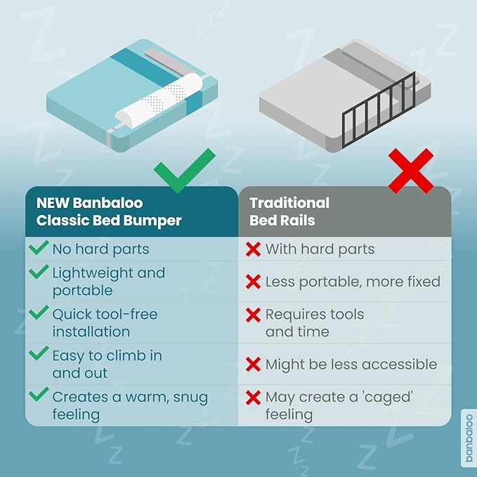 - 🧒 SAFETY BED FOR TODDLERS: The BANBALOO toddler bed rail bumper is a bed baby guard rail anti-fall system just as effective as other traditional bed guard rails for toddlers products. This bed bumper pads for boys and girls gives children a deep sleep and prevents bumps
