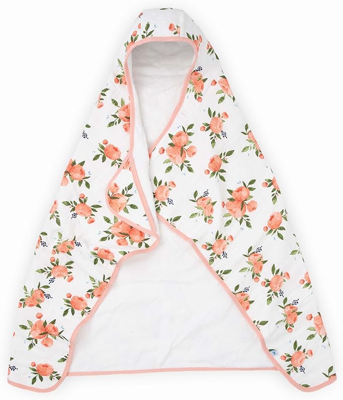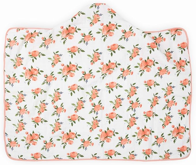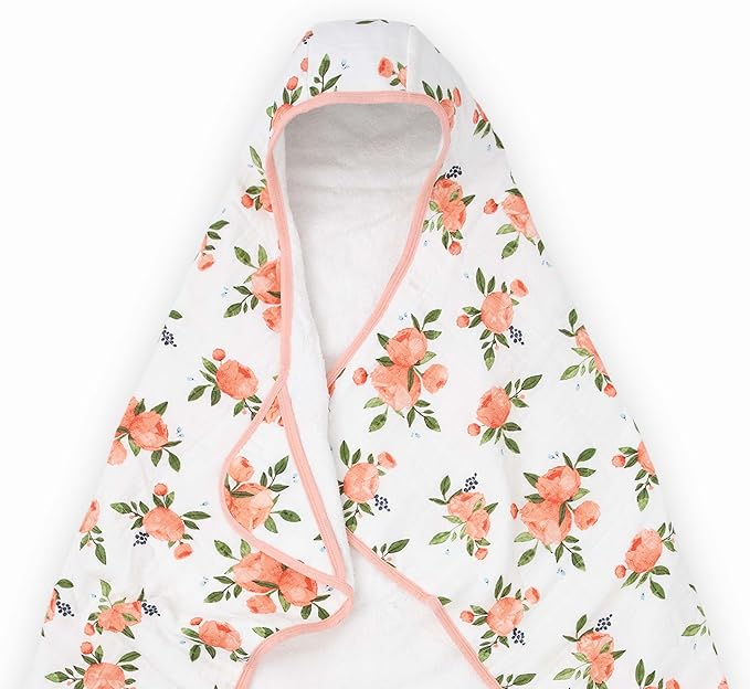Little Unicorn Premium Hooded Bath Towel| Absorbent Cotton & Terry Blend | Larger Size, 1-6 Years (Watercolor Roses)