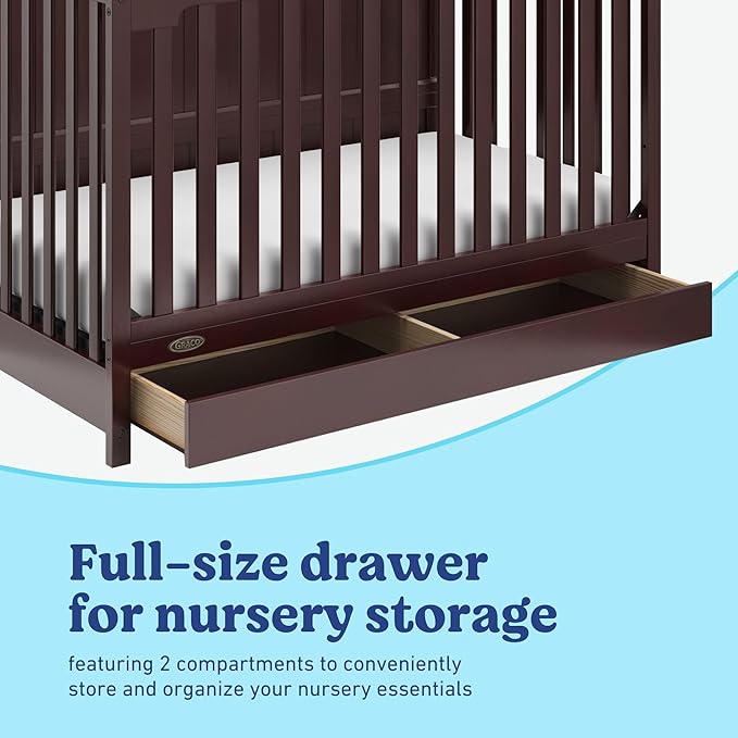 Graco Hadley 5-in-1 Convertible Crib with Drawer (Espresso) – GREENGUARD Gold Certified, Fits Standard Crib Mattress, Converts to Toddler Bed, Daybed and Full Bed, 4 Adjustable Mattress Heights