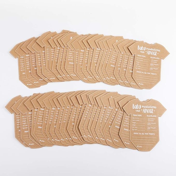 Kate Aspen Baby Predictions for Baby Shower Advice Cards - 50-Count Onesie Shaped Baby Shower Games for Girl or Boy - Gender Neutral Decor, Table Decorations, Activity and Keepsake For New Parents