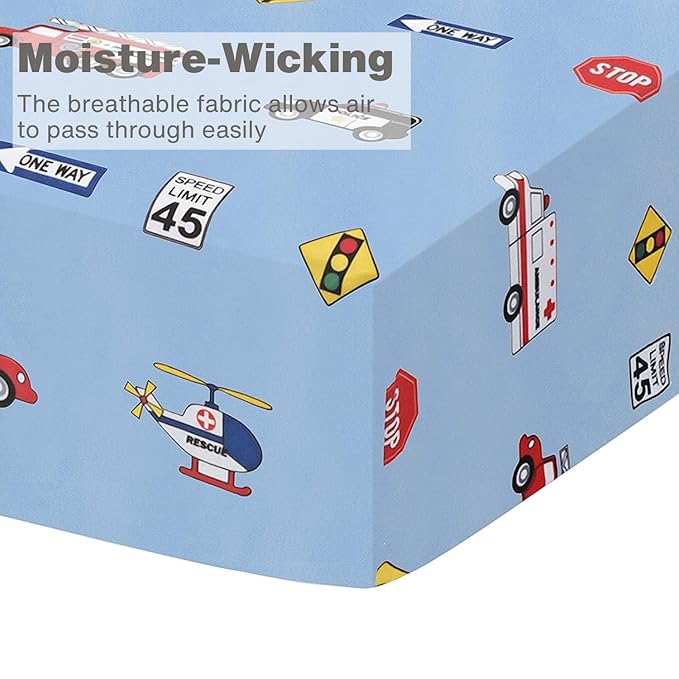 Baby Boy Fitted Crib Sheet Police, Fire and Rescue, 100% Soft Breathable Microfiber Baby Sheet, Fits Standard Size Crib Mattress 28in x 52in, Nursery Sheet