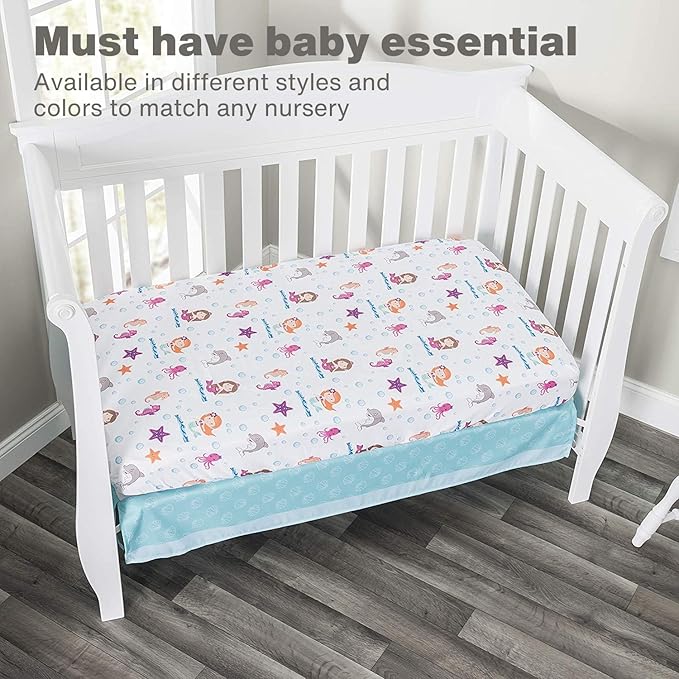 Everyday Kids 2 Pack Fitted Girls Crib Sheet, 100% Soft Breathable Microfiber Baby Sheet, Fits Standard Size Crib Mattress 28in x 52in, Nursery Sheet - Mermaid/Aqua
