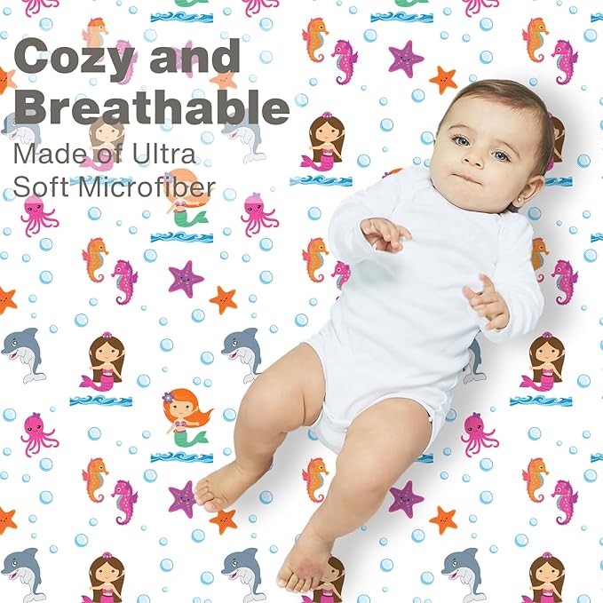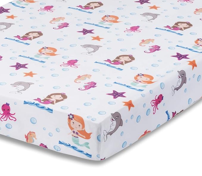 Baby Girl Fitted Crib Sheet Mermaid Adventures, 100% Soft Breathable Microfiber Baby Sheet, Fits Standard Size Crib Mattress 28in x 52in, Nursery Sheet