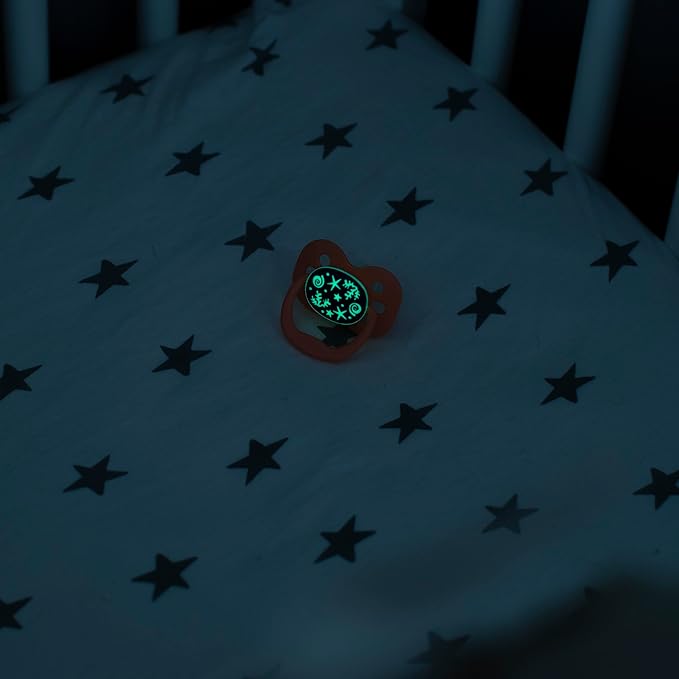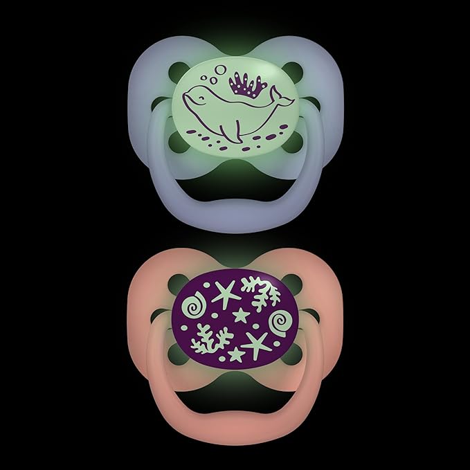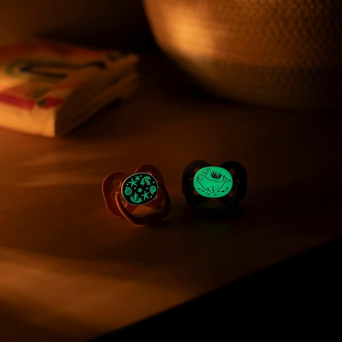 Dr. Brown's Advantage Glow-in-the-Dark Baby Pacifier, Fully Symmetrical Soother with Soft Silicone Bulb, Coral Ocean, 0-6m, BPA Free, 2 Pack