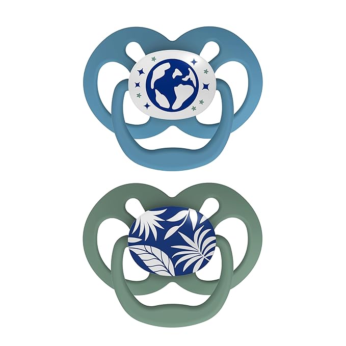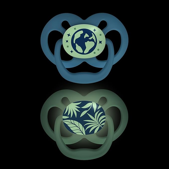 Dr. Brown's Advantage Glow-in-the-Dark Baby Pacifier, Fully Symmetrical Soother with Soft Silicone Bulb, Blue Nature, 6-18m, BPA Free, 2 Pack