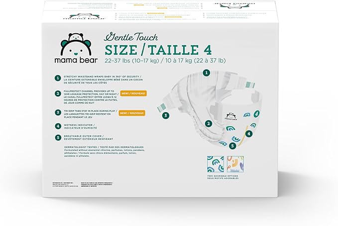 - IN THE BOX: Mama Bear Gentle Touch Diapers for babies 22β37 pounds; size 4; (4 packs of 37 diapers each, 148 total)