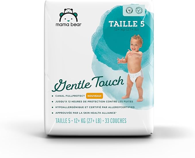 - IN THE BOX: Mama Bear Gentle Touch Diapers for babies 27+ pounds; size 5; 33 count