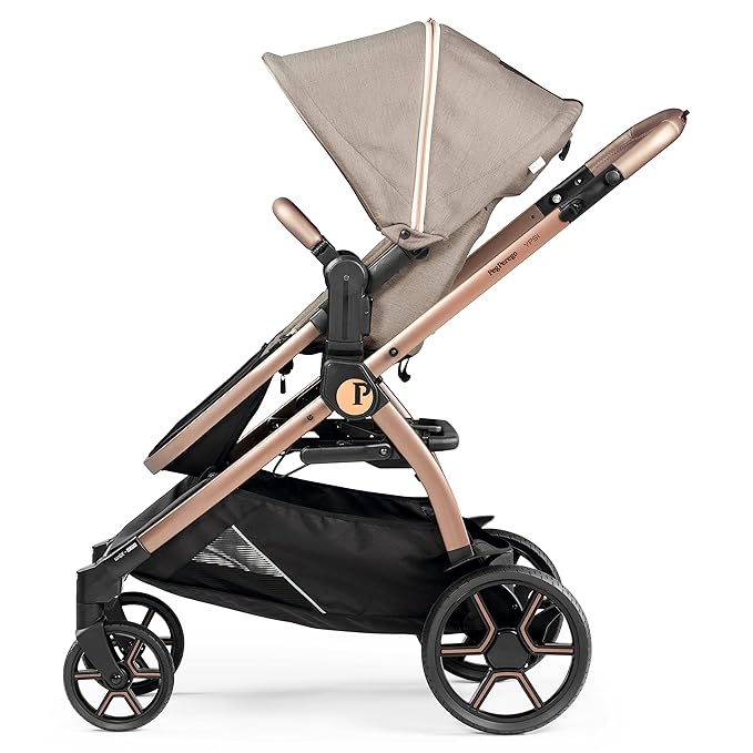 Ypsi – Compact Single to Double Stroller – Compatible with All Primo Viaggio Infant Car Seats & Ypsi Bassinets - Made in Italy - Mon Amour (Beige, Pink, & Rose Gold)