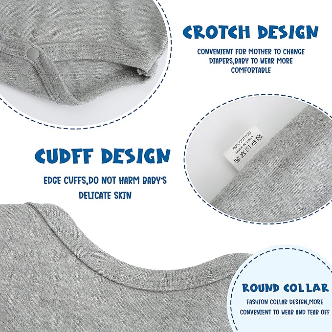 - Baby Bodysuits are standard size,which ensure a better fit and comfort.100% cotton and make skin feel Comfortable and Soft,Breathable and Flexy fabric clothing for babies.