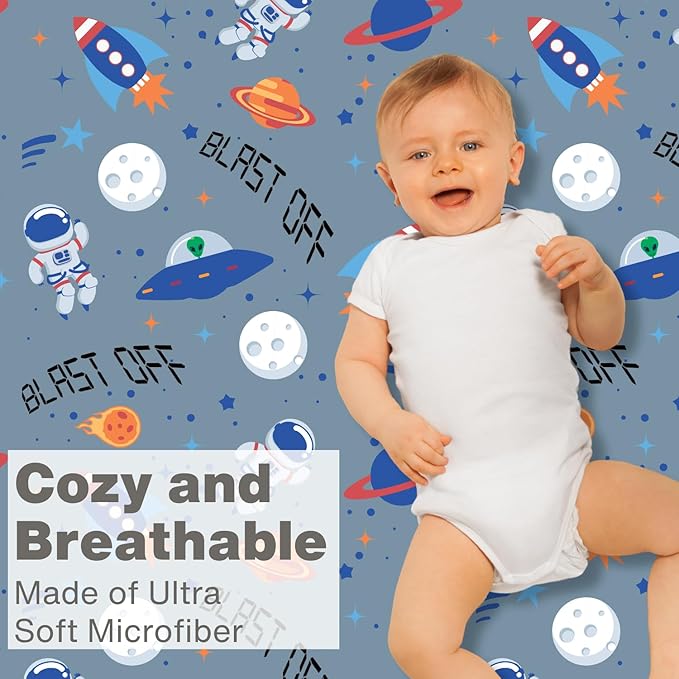 Everyday Kids 2 Pack Fitted Boys Crib Sheet, 100% Soft Breathable Microfiber Baby Sheet, Fits Standard Size Crib Mattress 28in x 52in, Nursery Sheet - Space/White