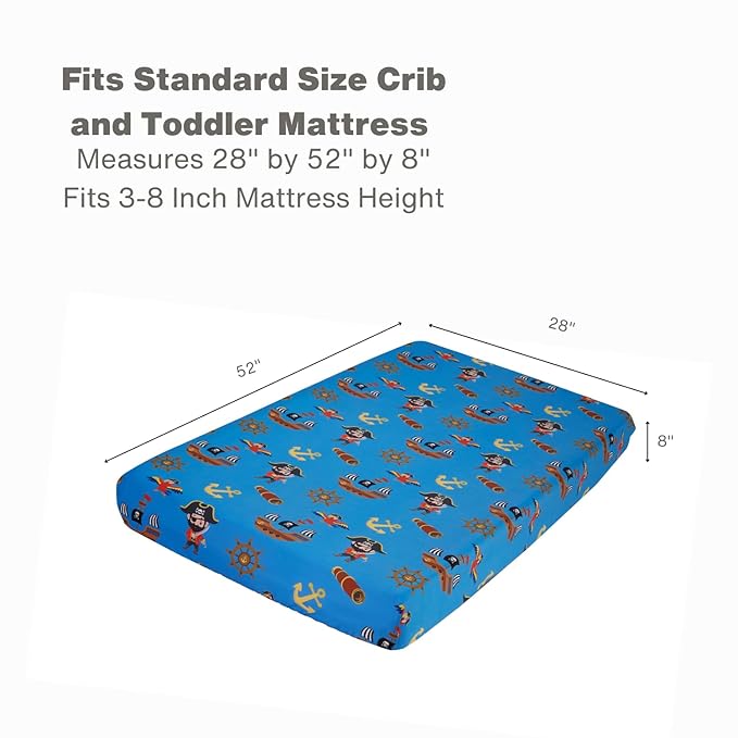 Everyday Kids 2 Pack Fitted Boys Crib Sheet, 100% Soft Breathable Microfiber Baby Sheet, Fits Standard Size Crib Mattress 28in x 52in, Nursery Sheet - Pirates/Grey